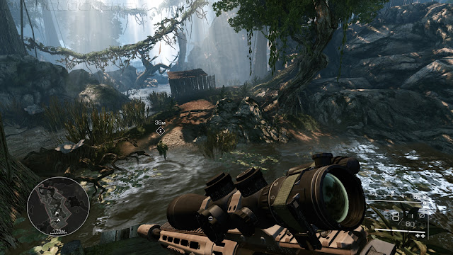 Empezaremos hablando de lo mejor que tiene Sniper: Ghost Warrior 2: el uso del francotirador. El principal atractivo de la saga se basa precisamente en ponernos en la piel de un soldado experto en el uso de este tipo de armas, por lo que podíamos esperar como mínimo que su funcionamiento fuera creíble y realista, algo que se ha conseguido con creces. A diferencia de casi cualquier juego de acción en primera persona existente a día de hoy, aquí no nos bastará con colocar a nuestro blanco en el centro de la mirilla y disparar, ya que también tendremos que calcular el desvío de la bala según distintos parámetros como el viento o la caída de la misma (esto es especialmente importante para los disparos más largos).